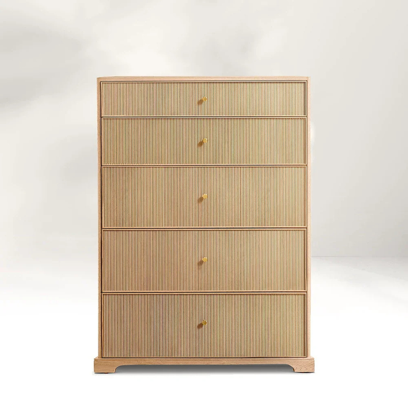 Haltbarkeit : Aus massiver Eiche wurde die 5-schmale Kommode für die 5-schalte Kommode für den Dauer gebaut. Die robuste Konstruktion, die mit hochwertiger Edelstahl-Hardware verstärkt wird, stellt sicher, dass sie täglich den Gebrauch standhalten kann, ohne Anzeichen von Verschleiß zu zeigen. Diese Kommode ist so konzipiert, dass sie jahrelang funktional und visuell ansprechend bleibt, was es zu einer wertvollen Ergänzung für jeden Raum macht.