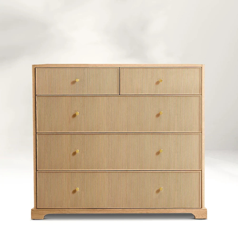 Durch 'proportionale Harmonie, materielle Präzision und benutzerorientierte Lagerung mischt diese Brust natürliche Holzwärme mit modernen Luxus (über gerillte Textur, Goldgriffe). Von der Privatsphäre im Schlafzimmer bis zur Unordnung und der Foyer -Funktionalität fungiert es als 'Style + Utility Bridge, das Ausgleich natürlicher Materialien und zeitgemäßes Design in jedem Detail.