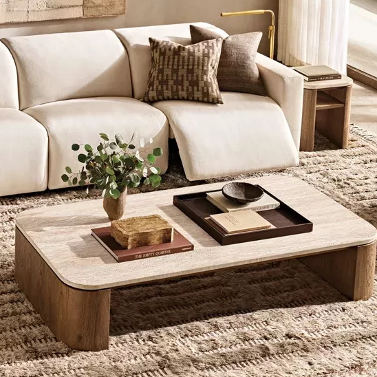 Komplementäres Matching: kombiniert mit einem L-förmigen Sofa (gerade Linien), der runde Tisch wechselt die Ecken. In Kombination mit einem quadratischen Couchtisch bildet es einen klassischen 'Square + Round' -Gonkontrast, um eine Monotonie zu vermeiden.