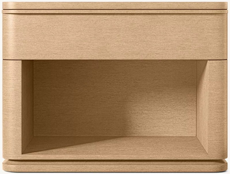Rustikale Resonanz: Die Naturholzkornversion übereinstimmt mit Wabi-Sabis 'Natural Authenticity'. Gekrümmte Linien erweichen das industrielle Gefühl; Kombiniert mit rauen Töpferwaren und Leinenbettwäsche fühlt es sich wie ein zeitloses Lagerstück an, das ein ruhiges Schlafzimmer mehr 'Geschichte ist.