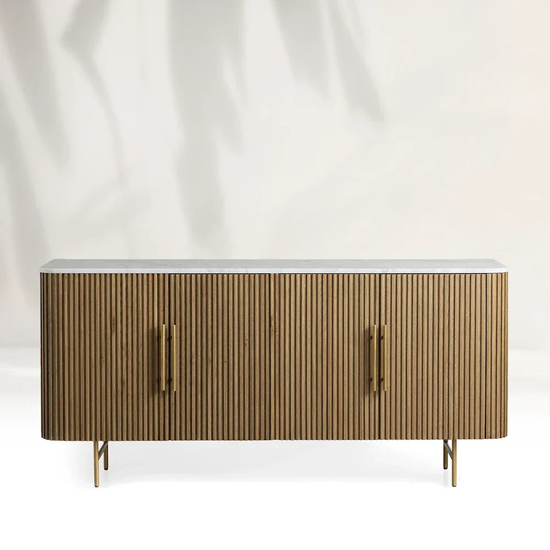 Dieser White Oak TV -Schrank verfügt über einen Top, der aus luxuriösen natürlichen Marmor gefertigt ist. Der Marmor mit seinen einzigartigen Adermustern, die ddeen Bächen ähneln, die sich durch eine Landschaft schlängeln, fügt einen Hauch von Eleganz und Raffinesse hinzu. Jede Platte ist eine - eine Art - eine Art, um sicherzustellen, dass Ihr Fernsehschrank wirklich unverwechselbar ist. Die kühle, glatte Berührung des Marmors steht wunderbar mit der warmen, körnigen Textur der weißen Eichenbasis und erzeugt eine harmonische Mischung aus Materialien. Das natürliche Marmor -Top dient nicht nur als atemberaubender Schwerpunkt, sondern bietet auch einen hervorragenden Wärmewiderstand und sorgt dafür, dass sie sich perfekt zum Aufstellen von Mediengeräten eignet. Es ist eine Kombination, die die Funktionalität mit hoher Endästhetik verbessert und den Gesamtcharm Ihres Wohnzimmers verbessert.