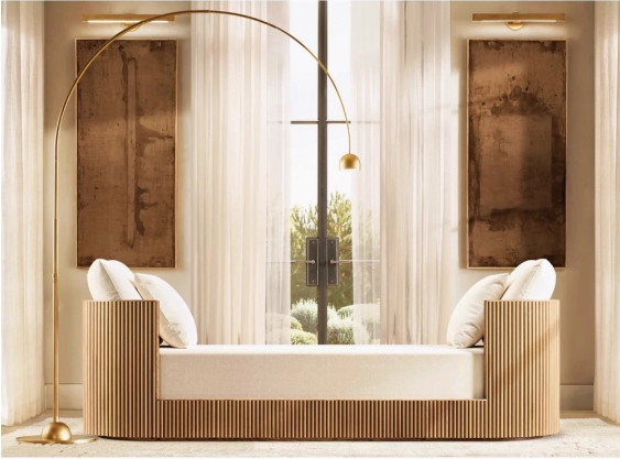 Handwerksverarbeitung: Die vertikalen Rippen des Holzrahmens werden genau geschnitten, und die Kanten werden poliert, um ohne Grat rund zu sein. Die Polsternähte ist ordentlich und die Verbindung mit dem Rahmen ist natürlich. Die Details zeigen die Qualität.