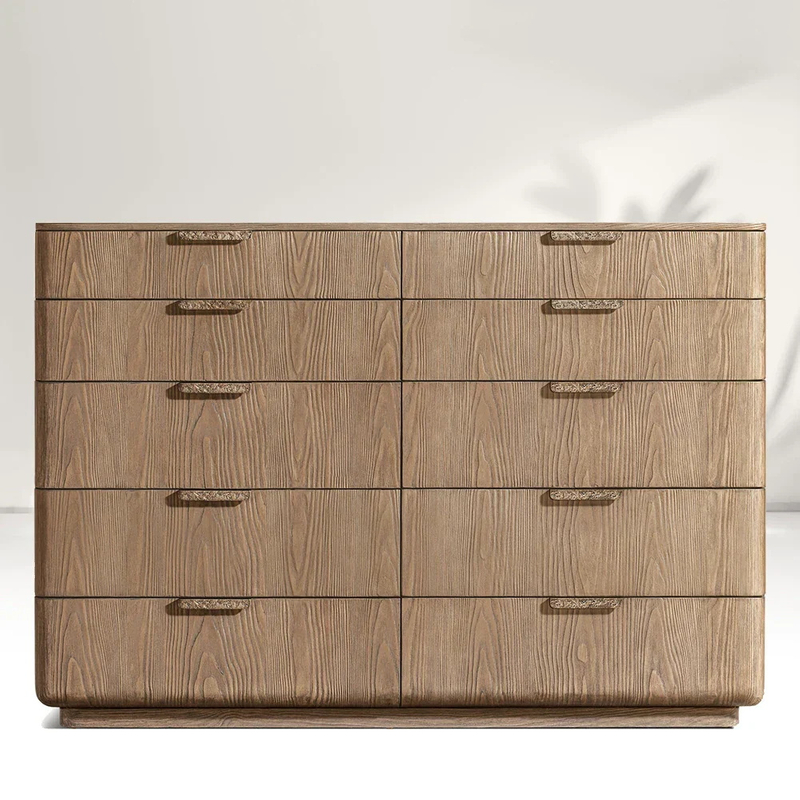 Einfaches Aussehen: Der Schrank hat ein minimalistisches Gesamtdesign mit glatten Linien. Es ist frei von übermäßigen aufwändigen Dekorationen und strahlt einen niedrigen, dennoch eleganten Charme aus. Sechs Schubladensätze sind ordentlich angeordnet und vermitteln visuell ein Gefühl für Ordnung und Regelmäßigkeit.