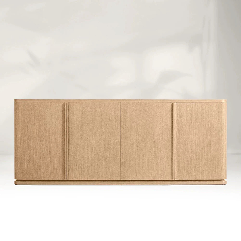 Dieser helle Holzkabinett integriert sich nahtlos in den Raum mit einem minimalistischen Stil. Die helle Holzstruktur ist einfach und natürlich und vermittelt ein warmes und glattes Gefühl. Die vier flachen Türverkleidungen, kombiniert mit einem eingebetteten Design, verfügen über ein handloses Erscheinungsbild, das die minimalistische Ästhetik verkörpert. Die untere schwebende Basis verleiht ein Gefühl der Leichtigkeit. Der Innenraum des Schranks kann flexibel für die Aufbewahrung organisiert werden. Egal, ob es zum Speichern von Tabellen und kleinen Geräten im Essbereich verwendet wird, in das Wohnzimmer umgezogen ist, um Bücher und Sammlungen anzuzeigen oder am Eingang tägliche Gegenstände zu lagern, es kann die Rolle eines 'Quiet Order Keeper ' im Raum erfüllen. Mit seiner einfachen Form und praktischen Funktionen kann es im Haushalt eine komfortable und stilvolle Atmosphäre schaffen, wobei natürliche Materialien und klare Linien die Lebensumgebung verbessert werden.