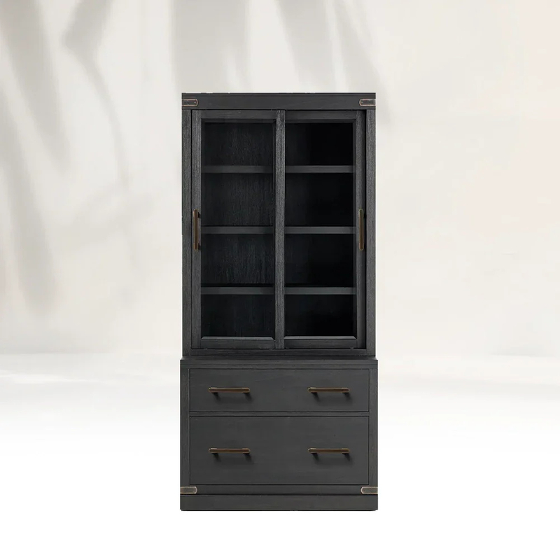 Dieser Schrank kombiniert Display und Speicher. Das obere Glas mit der Fronted -Abteilung eignet sich hervorragend, um Gegenstände wie Bücher, Dekorationen oder Tabellengeschirr zu präsentieren und gleichzeitig Staub zu halten. Die unteren Schubladen bieten einen versteckten Speicher für kleine Gegenstände, Dokumente oder persönliche Gegenstände, um Ihren Platz aufgeräumt zu halten.