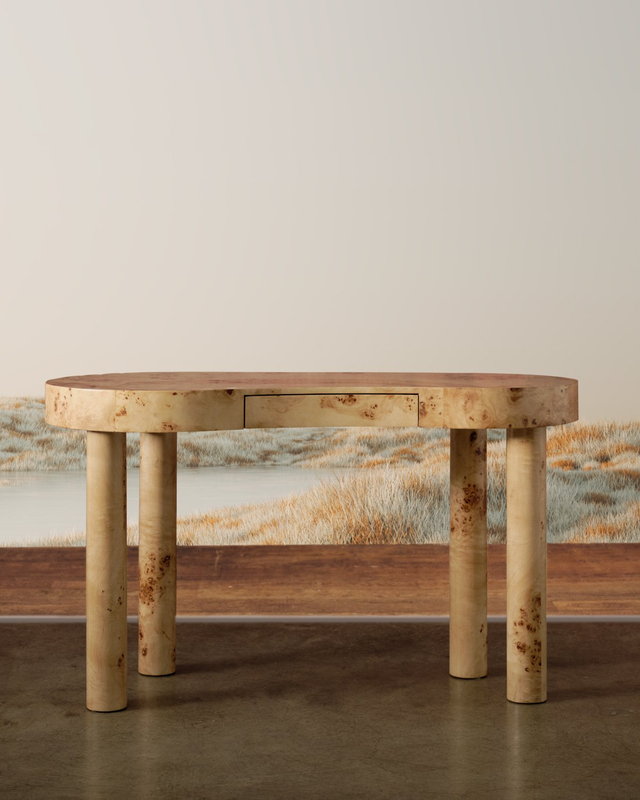 Dies ist eine charakteristische Tabelle. Aus Holz mit Sturztexturen gefertigt, hat es einen hellen Holzton, der ein einfaches und natürliches Gefühl ausstrahlt. Die ovale Tischplattenpaare mit vier zylindrischen Beinen, die eine glatte und minimalistische Form erzeugen. Es gibt eine einzige Schublade in der Mitte, die sowohl für die Aufbewahrung als auch für dekorativ funktionsfähig ist. Insgesamt verbindet es natürliche Einfachheit mit einer künstlerischen Note, wodurch einem Raum einzigartiger Charme verleiht und sich gut zu verschiedenen Heimstilen und einem Sinn für Stil schätzt.